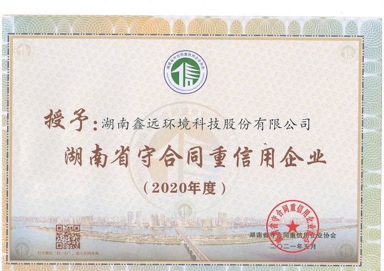 在本次大会中,湖南suncitygroup太阳新城环境科技股份有限公司荣获2020年度湖南省守合同重信用企业。