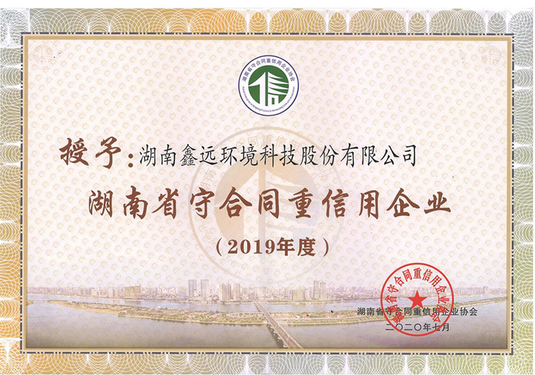 湖南suncitygroup太阳新城环境科技股份有限公司荣获2019年湖南省守合同重信用公示企业